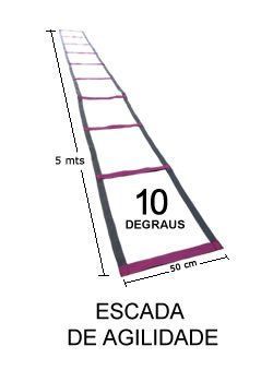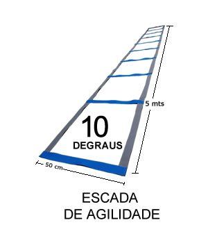 Acessório utilizado ao ar livre, em casa, em academias e por personal trainers, a Escada de Agilidade proporciona treinamentos de funcional, na qual desenvolve melhora na agilidade, coordenação motora, perca de peso e melhora na noção espacial do atleta.